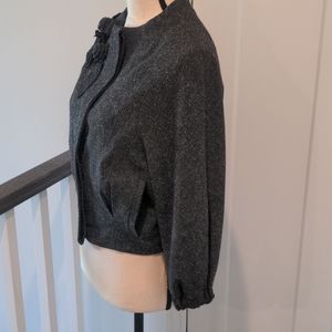 Super pretty tweed cropped jacket. Floral applique on one shoulder. Fully lined. Two front pockets, three quarter sleeves. In great condition. Reasonable offers are always welcome! Bundle to save more and please ask questions!