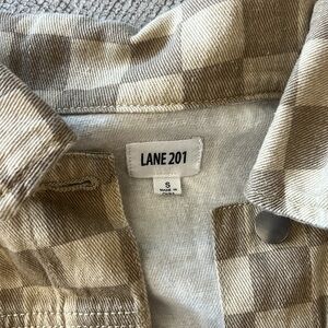 Women’s tan checkered cropped jacket. Size s. Never worn tags removed.