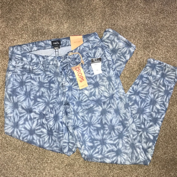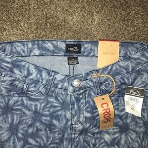 Brand new cropped jeans from Rue 21. White faded firework design along the whole pants. Stretchy denim fabric which makes them very comfortable.