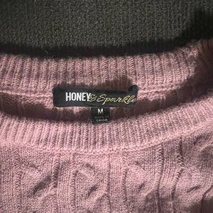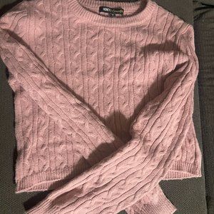 Super cute cropped sweater in a beautiful shade of pink. It is cozy, not too thin or thick, and perfect for chilly weather. I have too many sweaters right now which is the only reason I am selling! It is in perfect condition!