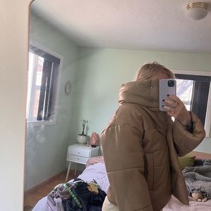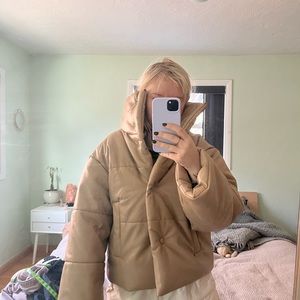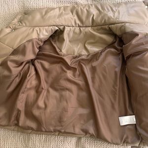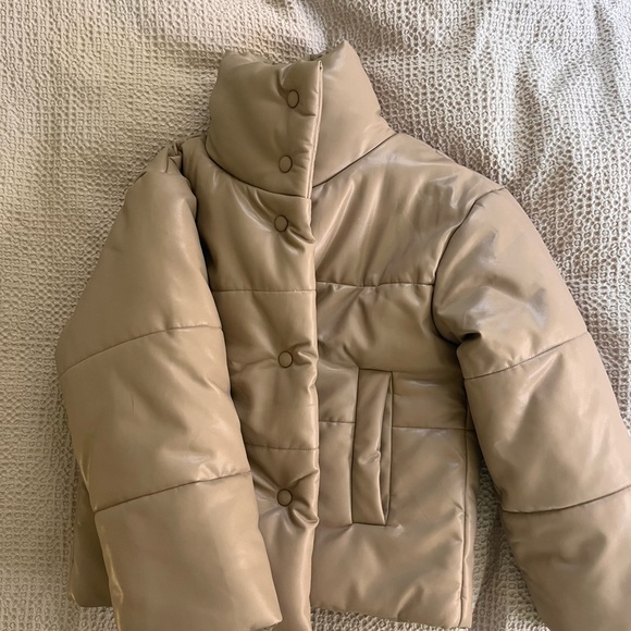 Super cute synthetic puffer jacket. Warm for winter conditions and water resistant