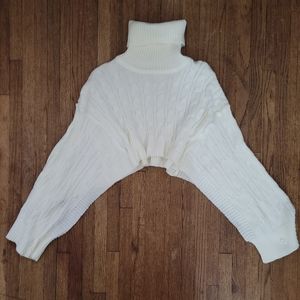 Knit turtle neck cropped pullover sweater. long sleeve with button detail. shawl design.