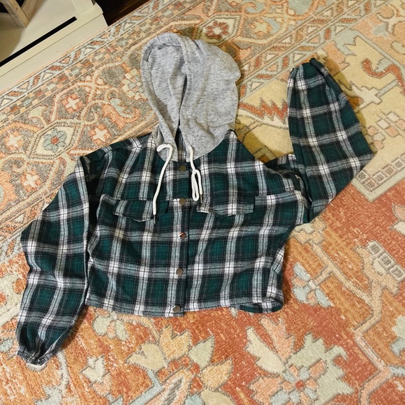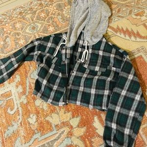 Green plaid light cropped shacket, can be worn as jacket or shirt