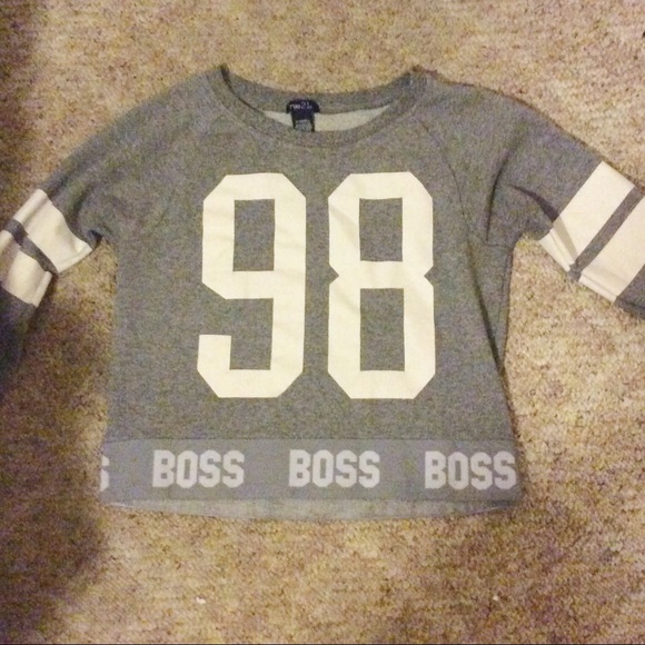 Cropped sweat shirt that says; "98" "Boss"