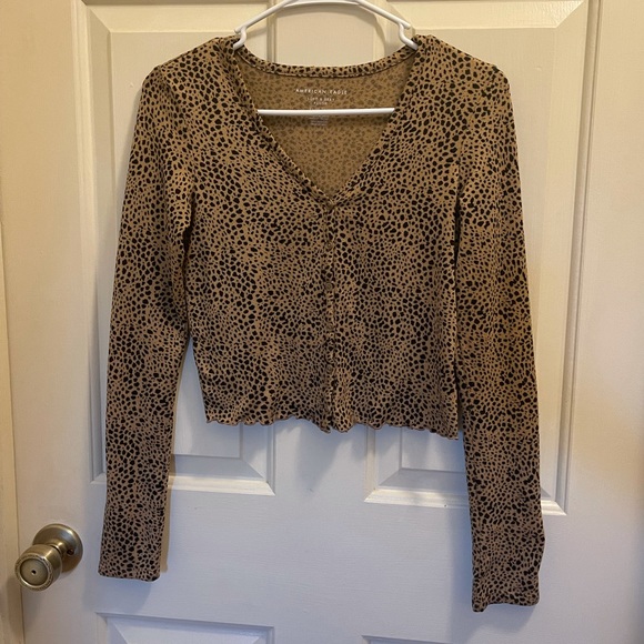 Crop style sweater from American eagle. Ruffled seam at bottom. Extra small but can fit a small.