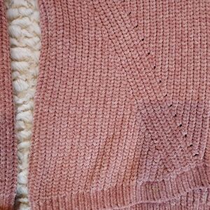 Rose colored short sweater by Hippie Rose, soft to the touch, cuffed sleeves.
