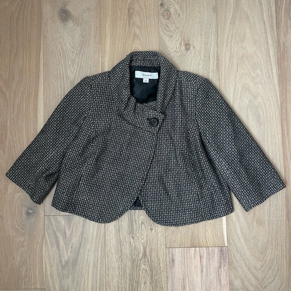 Like new cropped swing jacket, 3/4 sleeve. Black and beige tweed like material.