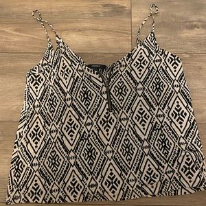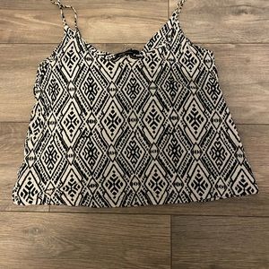 Black & tan cropped spaghetti strap tank with adjustable zipper