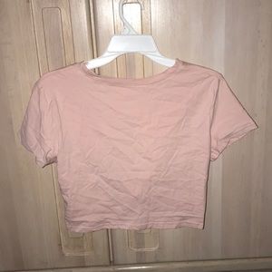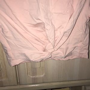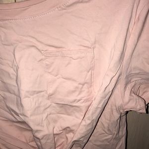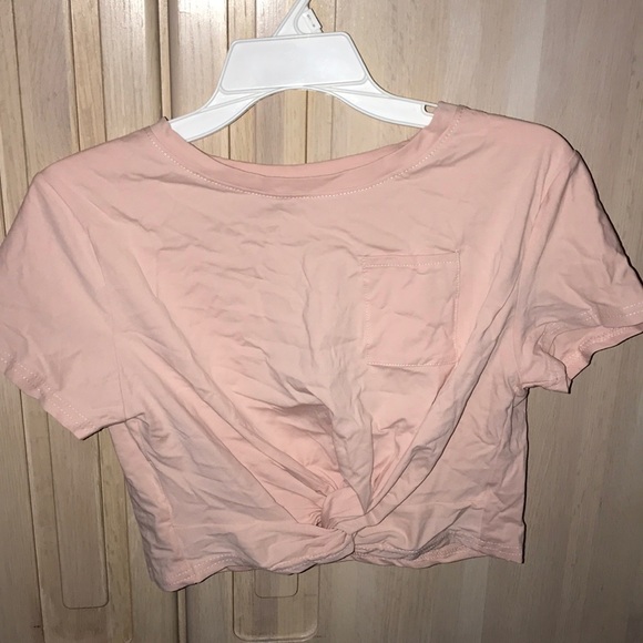 Pink colored tee with pocket and tied up at bottom