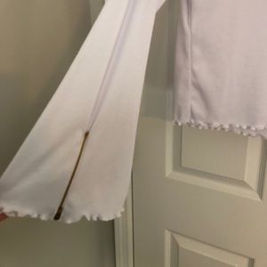 Cute ribbed high neck top. Cropped style. Flare sleeves with gold zipper. Never worn! Brand: boohoo- size: US 10- fits like medium