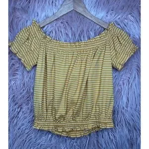 Very soft and comfy. Off the shoulder cropped belly shirt. Size M.