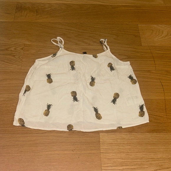 Plain white crop top with pineapples all over cute fits, well adjustable straps, and airy kids to teen
