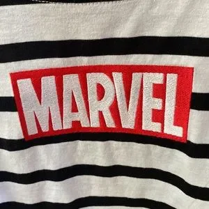 Size medium, cropped, black and white stripes, Marvel embroidery