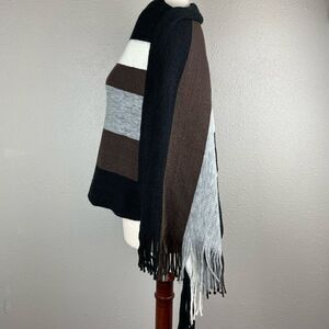 Stylish cropped poncho style sweater measuring approximately 20 inches in length from shoulder to hem. 100% Acrylic