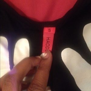 Mickey Mouse hand printed Croptop. Handprints are right on breast as if being grabbed. Really cute. Size small but runs large. Fits medium to large. Shows a lot of stomach.