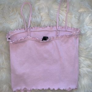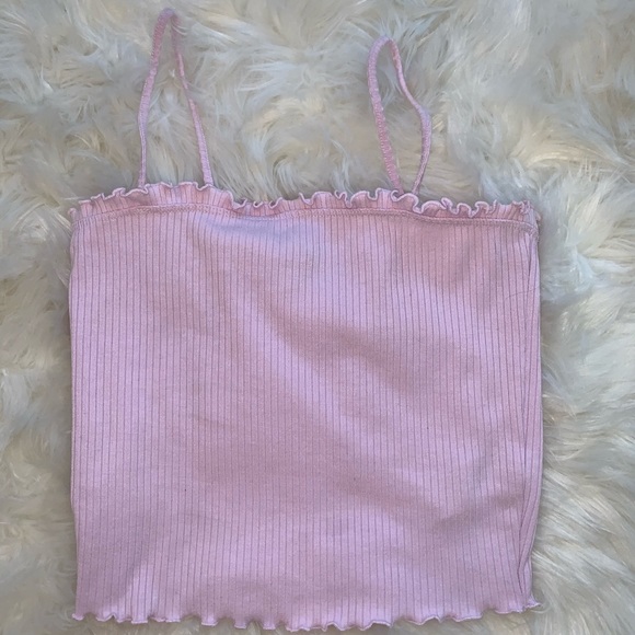 Pre-owned. Clean. In good condition. Nice ruffles on top and bottom of the shirt.