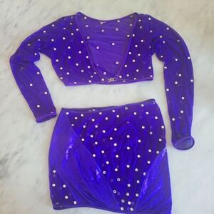 Skirt: Purple partially sheet, rhinestones, 14" in length, 13" waist