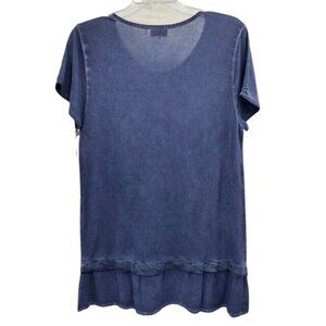 crosby blouse, blue rayon top, layered hem shirt, short sleeve casual, modern minimalist top, soft washed blue blouse, women’s large, Spring, Summer