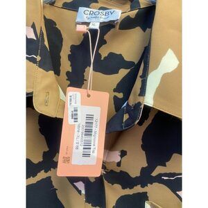 Introducing the CROSBY by Mollie Burch Mignonne Top, a stylish addition to your wardrobe. This top features a spread collar, chest pocket, button cuffs, and a curved hem for a chic look. The button front adds a touch of sophistication, while the 100% polyester material ensures comfort and durability. The undone color/pattern gives it a trendy twist. Approximately 29 inches from shoulder to hem, this top is perfect for any occasion. The model is 5'10' and is wearing a size small. Machine washable and imported, this top is a must-have for any fashion-forward woman.