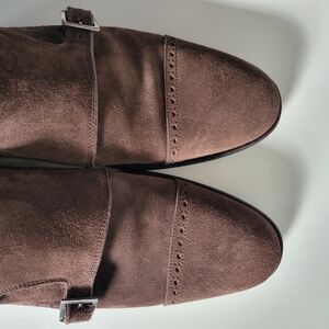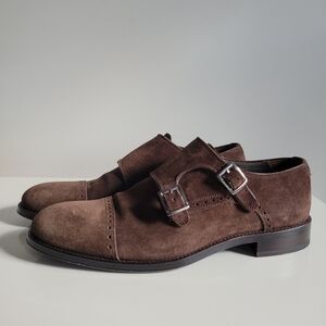 Crosby Square Allen Double Monk Strap Brown Suede Loafer Dress Shoes Size 8.5