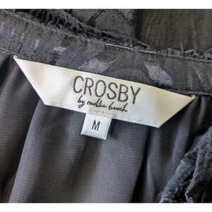 Crosby by Mollie Burch Black Watts Midi Tiered Dress Size Medium Short Sleeve