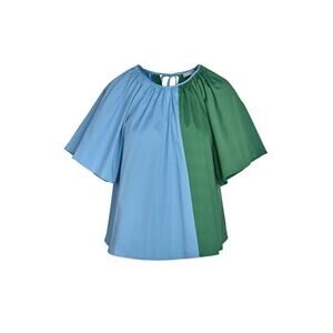 Features flutter sleeves, a tie-back closure, a gathered neckline, and a swingy A-line fit, offering a classic silhouette. Made from 100% Cotton. True to size.