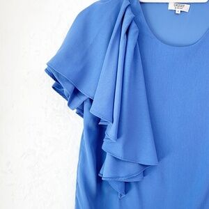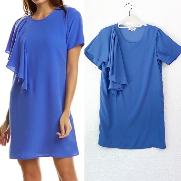 Crosby by Mollie Burch Jeni Ruffle Accent Sleeve Shift Dress Blue Sz M