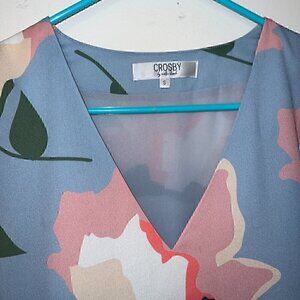 Crosby by Mollie Burch Lined Dress Bell Sleeves Flowers Blue - size S