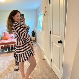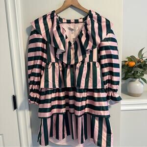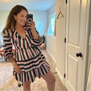 Wow, I am so in love with this stunning designer brand new with tags high end brand Crosby by Mollie Burch green and pink striped v neck front long sleeve mini dress