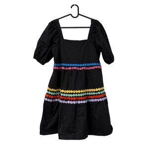 Crosby by Mollie Burch Saylor Black Rainbow Embroidered Puff Square Neck Dress S