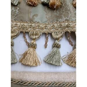 guest·damask·jacquard·sage·gold·cotton·fringe·beaded·traditional·elegant·vintage·powderroom·bath·decor·ornate