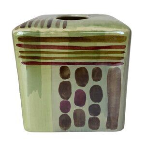 Croscill Minérale Ceramic Tissue Box Cover and Soap Dish Set Hand Painted Green