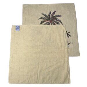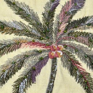 Croscill Napkins Yellow Tropical Palm Tree Embroidered Beaded Linen Square 13 In
