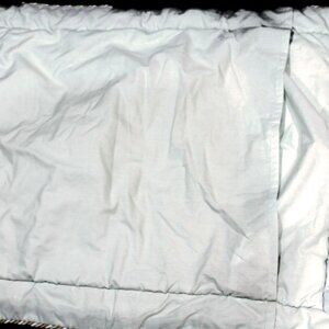 These are so luxurious. Soft blue, satin-like with braid around the edge. They measure 33 by 26 inches. In wonderful condition w/o stains, pelling, tears.