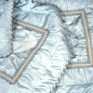 Croscill Soft Aqua Blue Gold Wisteria Floral Set 2 Euro Pillow Shams