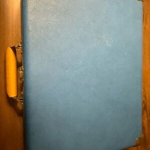Enjoy your favorite vinyl records with this stylish blue and yellow portable turntable. Perfect for music lovers on the go.