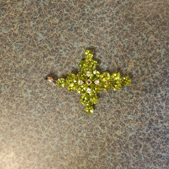 heavy 925 cross with peridot and white zircon (not cubic zirconia).