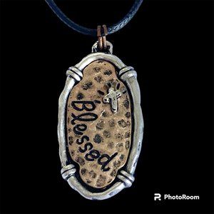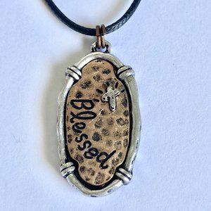 Cross BLESSED Pendant Necklace Copper Silver Plated 18-19" Christian Message