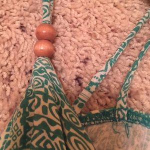 Stunning cross back sleeveless top, with Kelly green and white Aztec design! Extremely comfortable and an all around great shirt (comes from a non-smoking house)