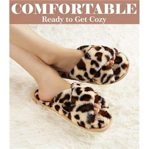 🧿👗【Apply to Various Occasion & Best Christmas Gift Choice】Whether a pajamas party, date, family gatherings, travel or other special occasions, you can match the fuzzy cross band open-toed slippers with dress, T-shirts, jeans, shorts, any casual wear. It also can be wear in all seasons. Indoor and outdoor slippers have many advantages, are the best gift choice for mothers, wife and friends.