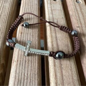 Cross Bracelet Crystals Brown String Adjustable Religious Jesus Christian