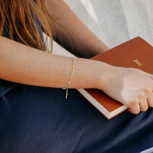 Features: Dainty stainless steel link bracelets with a classic cross design, plated with 18K gold and enamel. Each bracelet measures 7 inches with a 2-inch extension for a comfortable fit. Set of 9 pieces, ideal for gifting or sharing.