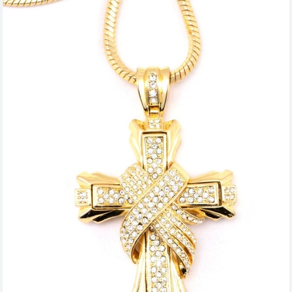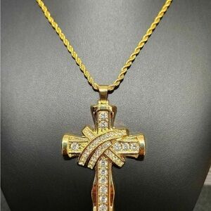 Diamond Three-Dimensional Cross Pendant Necklace Clavicle Chain Luxury Temperament