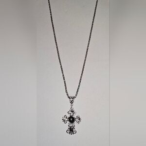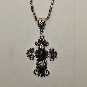 Silver Chain Semiprecious Stone Necklace Pendant. 1.75” x 1.25” Wide. 18” Extension Chain.