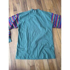 The Cross Creek Vintage Rugby Shirt in size M is a classic piece made in the USA with a green and purple striped pattern, perfect for casual occasions. This long sleeve shirt features a collared neckline and button closure, crafted from comfortable cotton fabric. With a vintage appeal and country heritage, this polo shirt is a versatile choice for any season, whether it's winter, summer, fall, or spring.