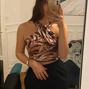 Brand new never worn size M/L. I would say someone with Double D chest and up! Super cute top! I loved the other colors but animal print isn’t my fav. That’s why I’m listing it.
