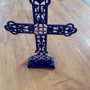 Cross decor. Sturdy, great quality. Clean. 19 and a half inches tall.