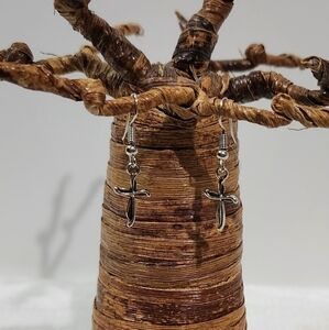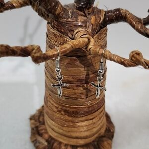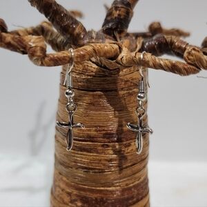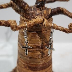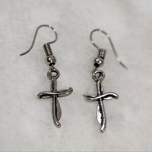 Cross Drop Dangle Silver Fish Hook Earrings. Religious, Christian, Faith, Christ symbol. Smaller, .75" in length, lightweight, unique, double-sided images. Like new condition!