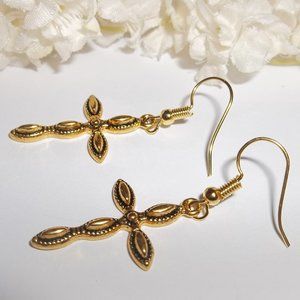 Cross Earrings, Cross Earring, Gold Cross Earrings, Gold Cross Earring Set C945