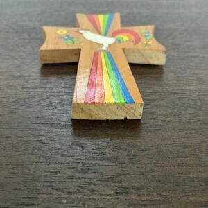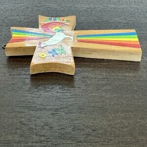 Cross El Salvador Vtg Handmade Rooster Rainbow Folk Art Colors Floral Religious